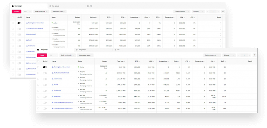 The overall cost includes setup fee, monthly service fee and the ad budget